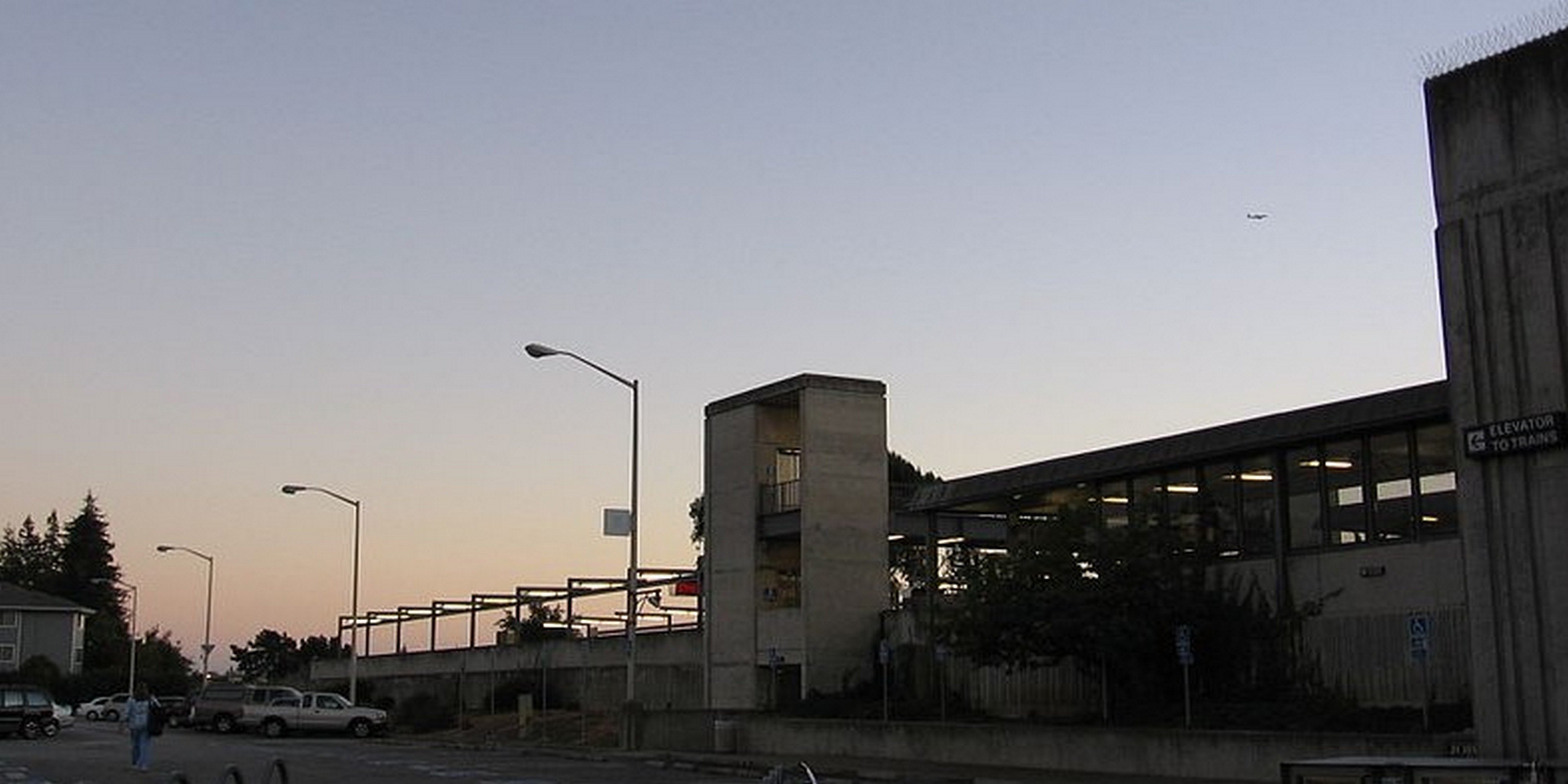 The South Hayward Station is an at-grade station along the San Francisco BART A-line located in Hayward, California. This station was built around 1970 including the main concourse structure and two elevator towers connected by an overhead pedestrian walkway.